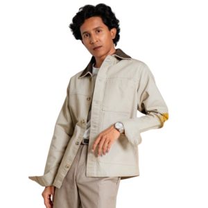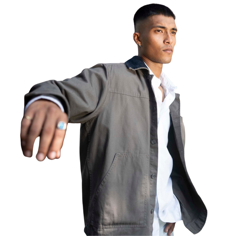 Wholesale cord collar chore jacket for men is designed to be durable and long-lasting. Full-sleeve and up-side corduroy collar. Plastic Chunky Buttons. Regular fit and Perfect for casual and business casual. Feel free to get in touch if you want to customize your denim jacket for bulk production based on your size chart and design.