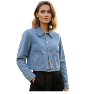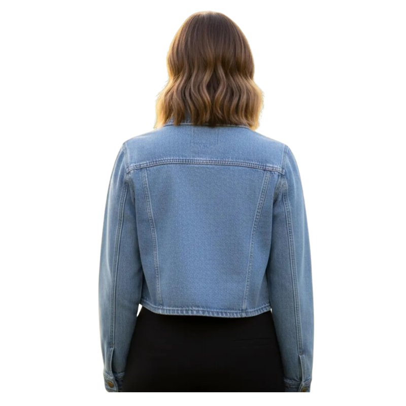 Our iconic, instantly recognizable wholesale denim jackets have been a symbol of individual self-expression for decades. It features a turn-down collar, two pockets, and is made of cotton denim fabric with filling for warmth. These wholesale modern short denim jackets for women are available in our organized size chart. Feel free to get in touch if you want to customize your denim jacket for bulk production based on your size chart and design.