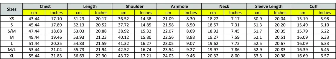 Size Chart: