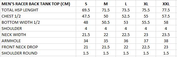 This wholesale ribbed/pure Cotton racerback tank top for men is available on our organized size chart. Feel free to get in touch if you want to customize your tank top for bulk production based on your size chart and design.