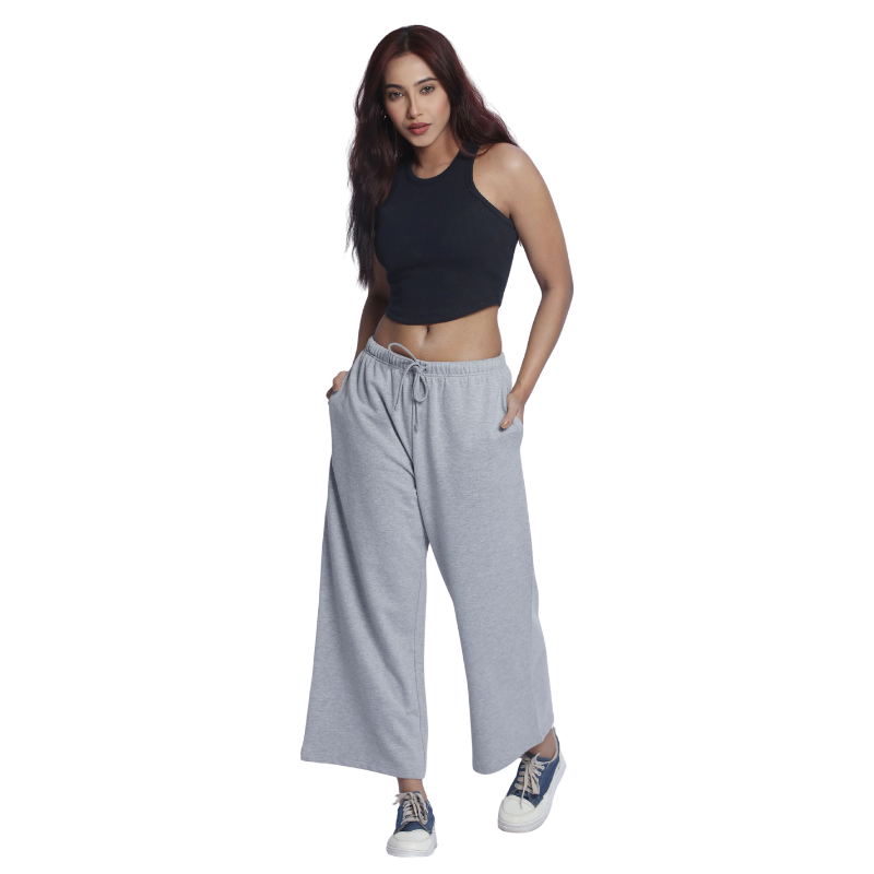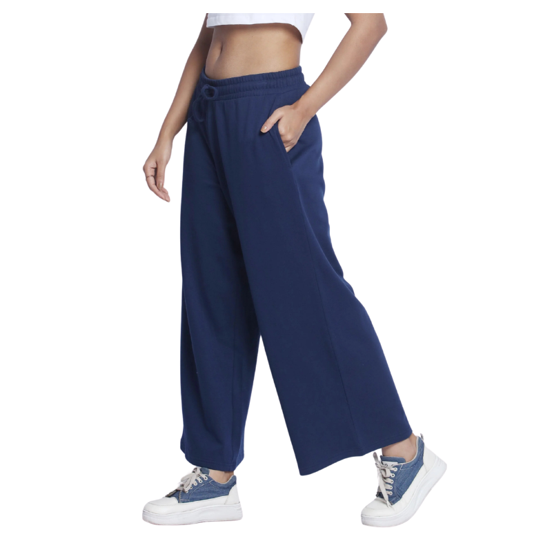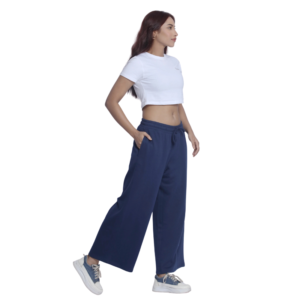 These wholesale wide-leg comfortable fleece trousers for women come with side seams and a covered elastic waistband with a drawstring. Whether you’re lounging at home or going for a jog, you’ll find these super soft sweatpants incredibly comfortable, thanks to the cotton and polyester blend fabric. The pants have a comfortable rise for a better fit, a slightly wider leg, and an open bottom. These wholesale classic fit comfortable wide leg fleece trousers for women are available in our organized size chart. Feel free to get in touch if you want to customize your trousers for bulk production based on your size chart and design.