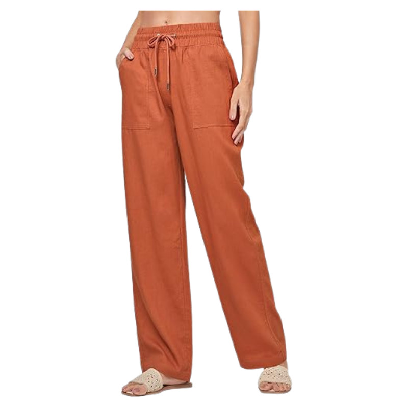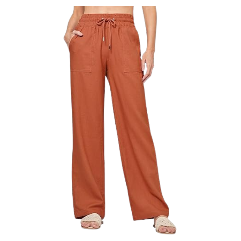 These wholesale wide-leg linen blend trousers for women are available in our organized size chart. Feel free to get in touch if you want to customize your trousers for bulk production based on your size chart and design.