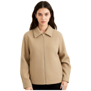 The Zip-up wool blend jacket for women is designed to be durable and long-lasting. Whether you’re seeking a comfortable and warm jacket for outdoor activities or for casual everyday wear, this jacket is an excellent choice. These jackets are available in our organized size chart. Feel free to get in touch if you want to customize your jacket for bulk production based on your size chart and design.