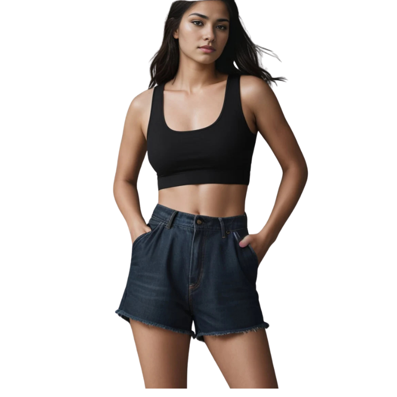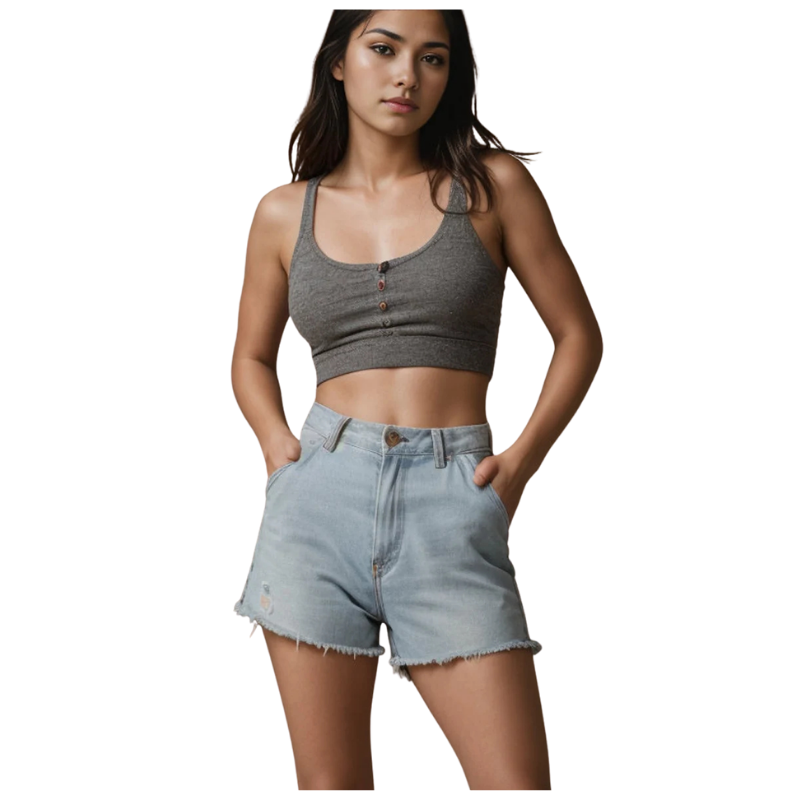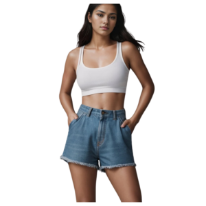 Women’s frayed-hem denim shorts feature five-pocket styling and a zipper front with a button closure. Elevate your warm-weather wardrobe with these high-rise shorts crafted from stretchy blue-washed denim with 2% spandex. These wholesale women’s frayed-hem denim shorts are available in our organized size chart. Feel free to get in touch if you want to customize your women’s denim shorts for bulk production based on your size chart and design.